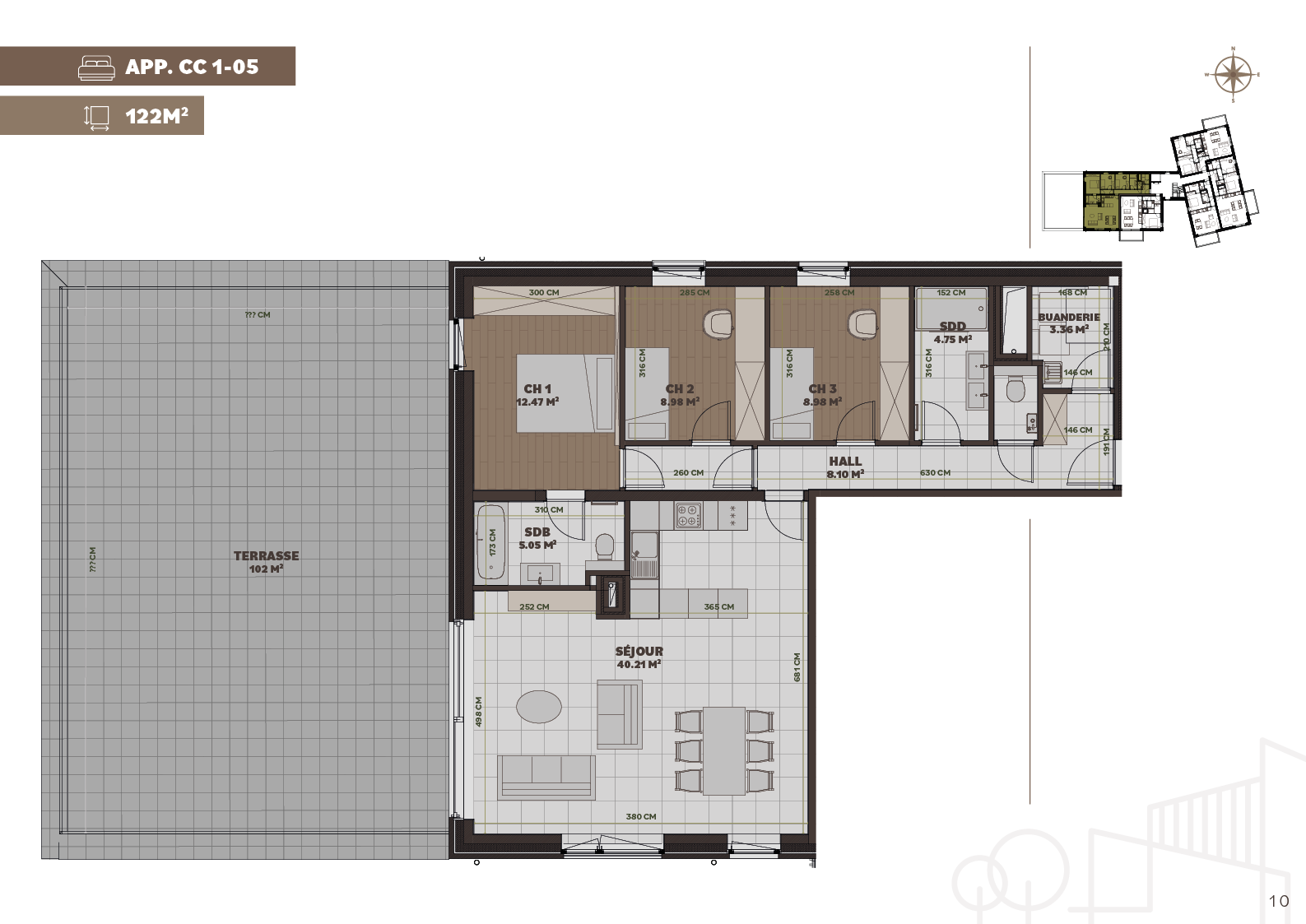 - Terrasse/balcon : 102 m²